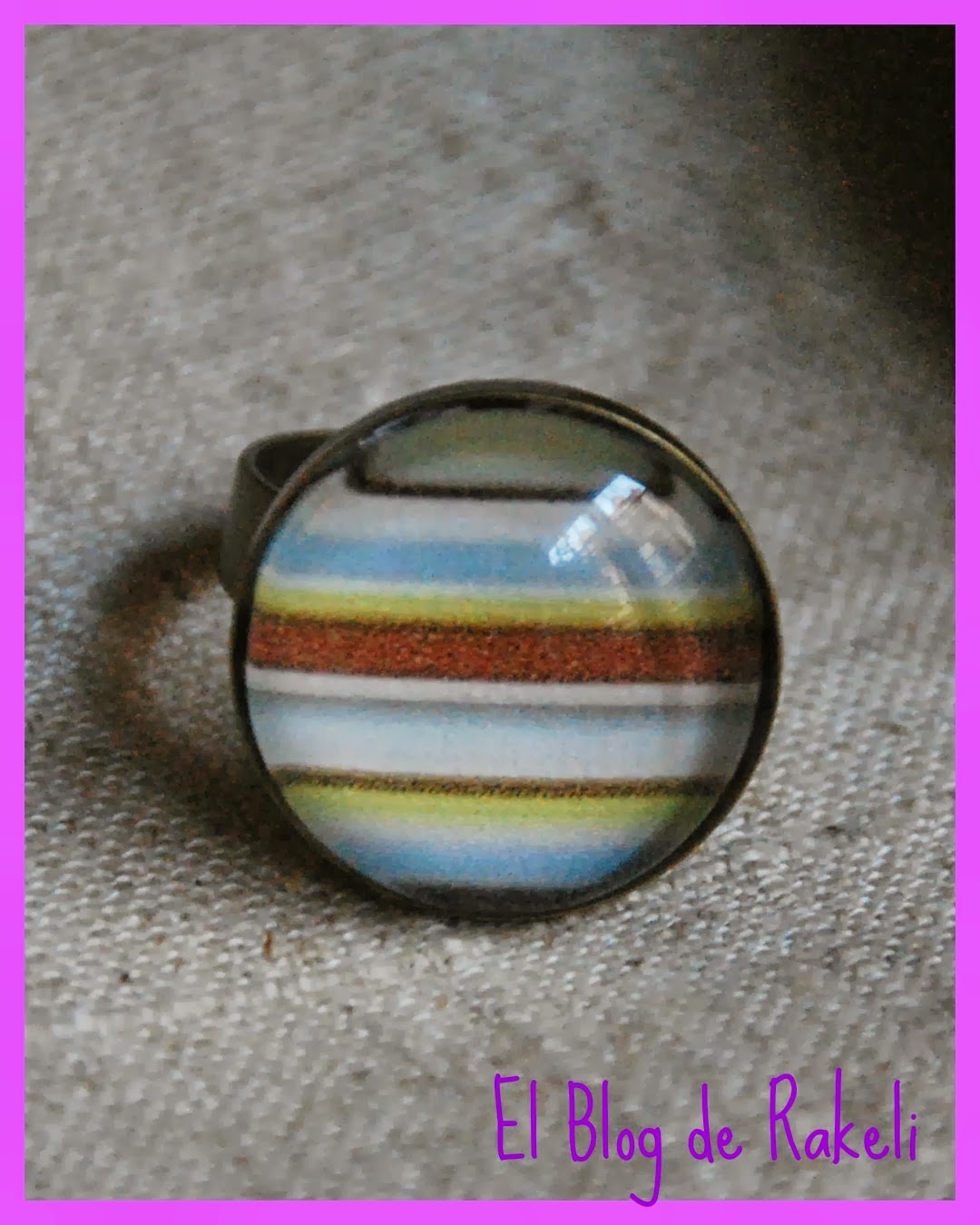 Anillo redondo de unos 18mm, de color bronce y con imagen protegida con cristal. Tienes el collar y los pendientes a juego en sus correspondientes secciones.